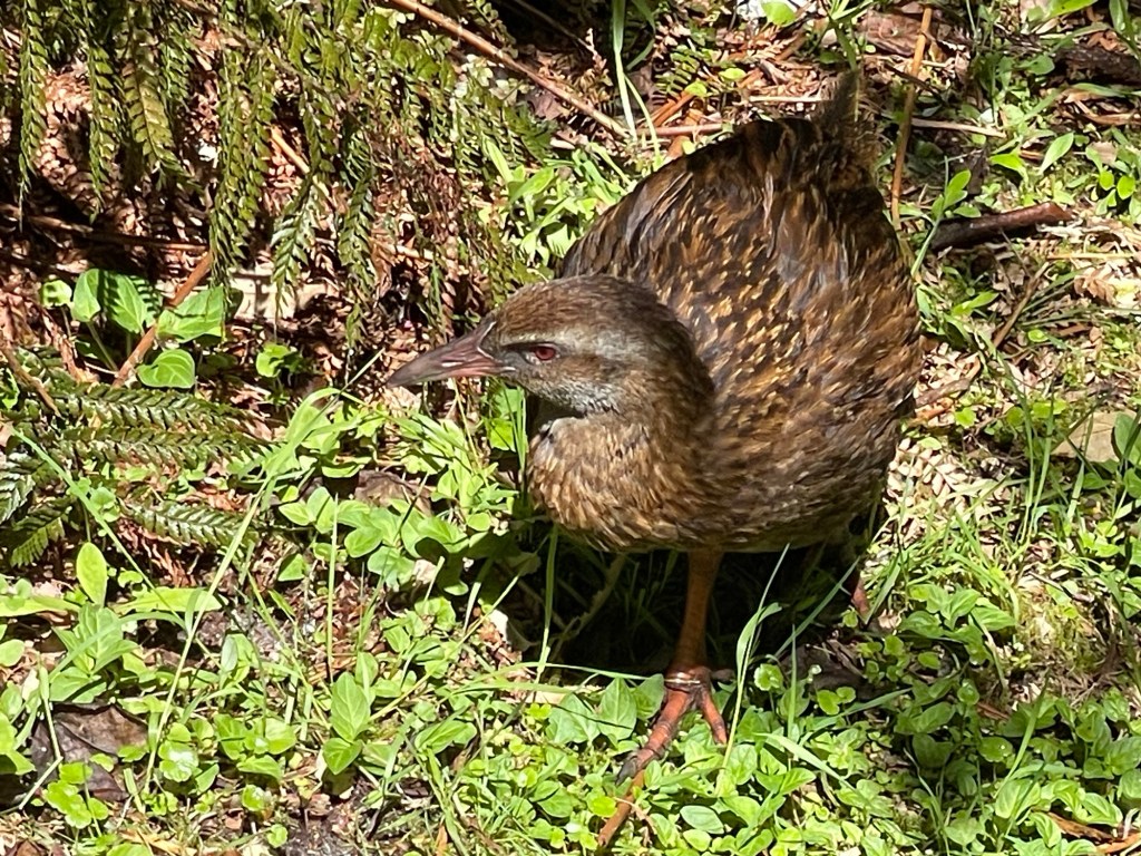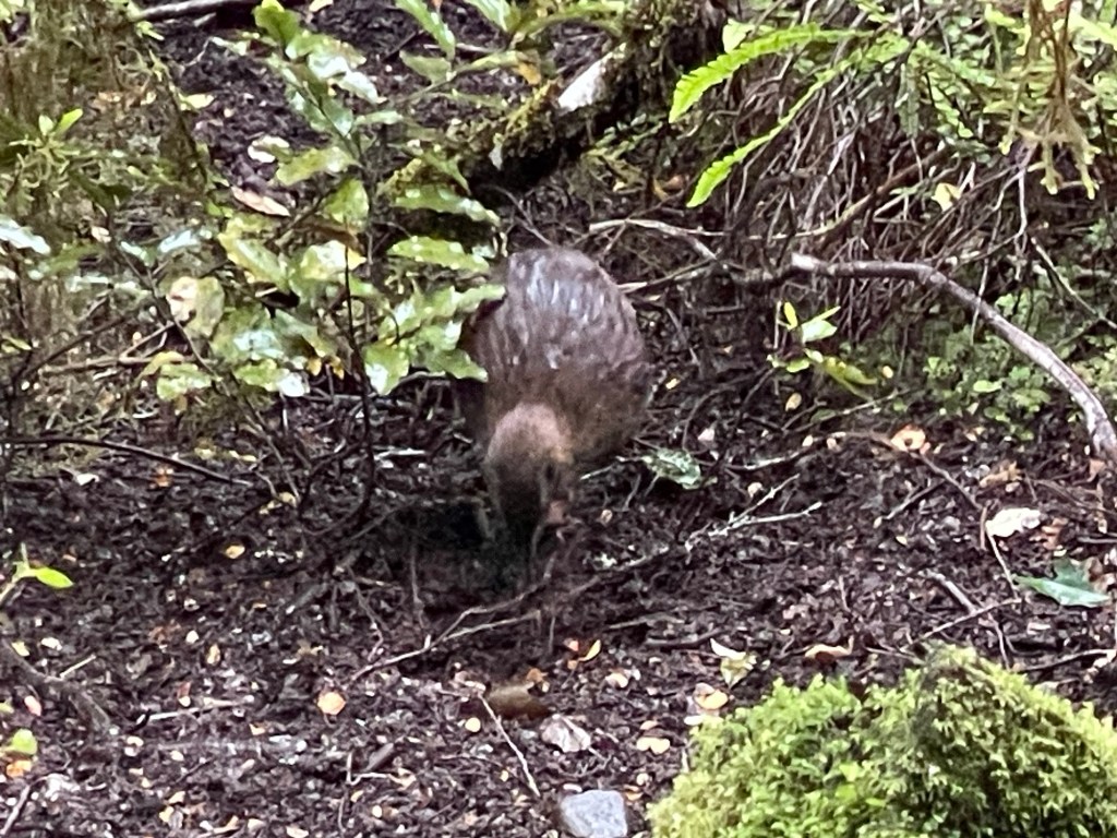 Bird of the day: the Weka. Although we were chuffed to see our first, we soon learned that they are fairly common, and they tend to hang around lodges and lunch spots. They move a bit like chickens and are around the same size but are much more fearless – the Kiwis call them “cheeky”. We once saw one steal a bag of snacks off the lap of one of the unwary hikers in our group and drag it off into the bush before she could react. One even pecked at Nick’s boot, presumably to see if it might taste good.
