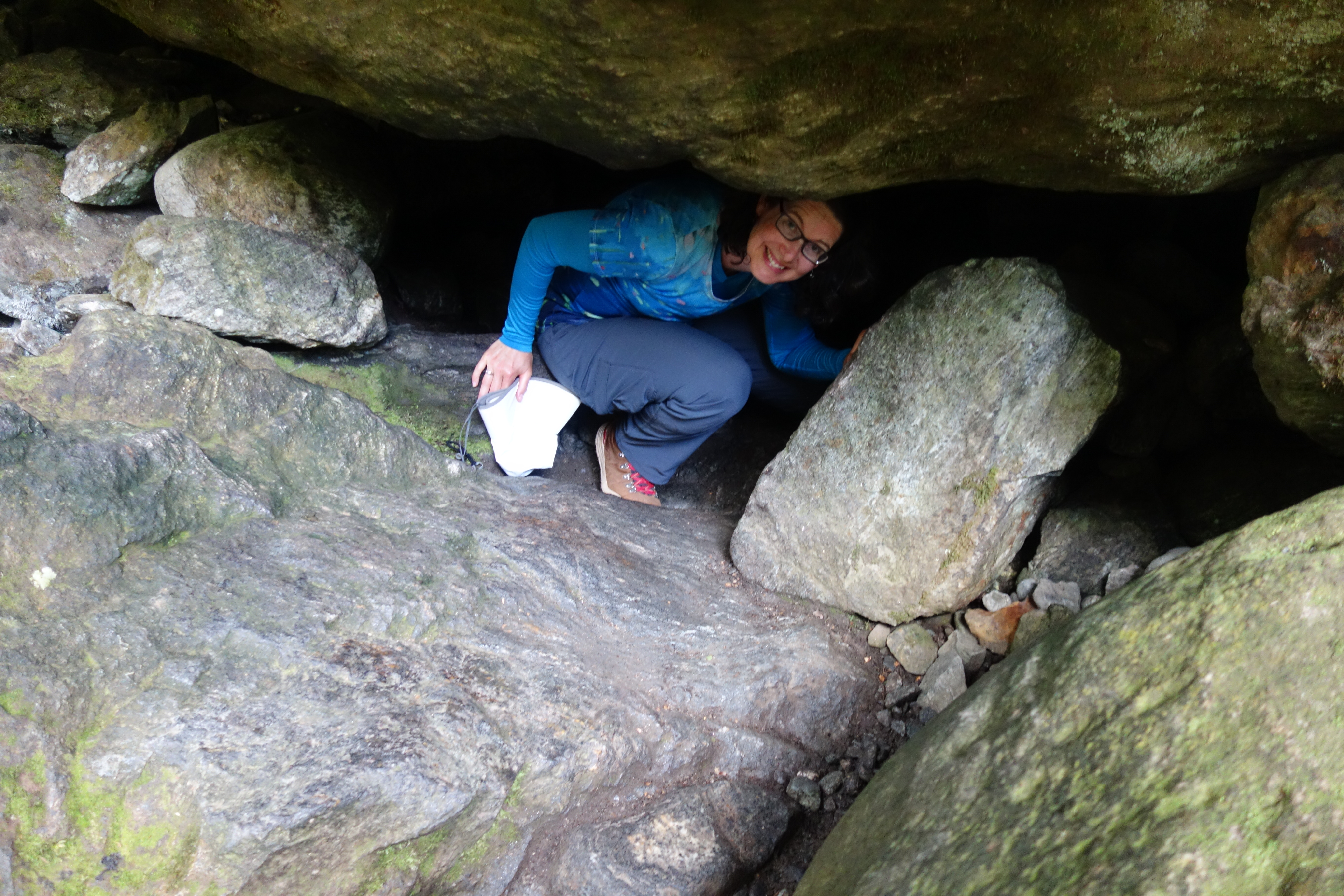 A neat side feature near the base of Mackay Falls is Bell Rock, so-called because of the shape of the cavity carved inside it. It is unassuming from the outside, seemingly no larger than countless other crannies in the large rocks alongside the trail. If you take the time to crawl inside, you’ll find a surprisingly large hollow within, with plenty of room for a group of people to stand together inside. Legend has it that the record for most occupants stands at 29, but we’re not sure we believe it.