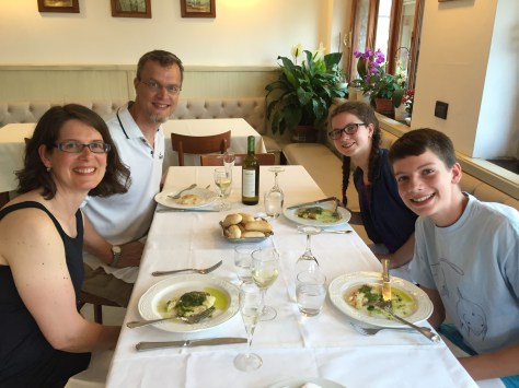 Bicycles are everywhere in Lucca, but they have some special options for tourists. What better way to promote family unity than a bicycle built for four? Well, technically it’s a quadcycyle, but whatever you call it, it was loads of fun! We made a full circuit of the walls, with everyone taking a turn steering.