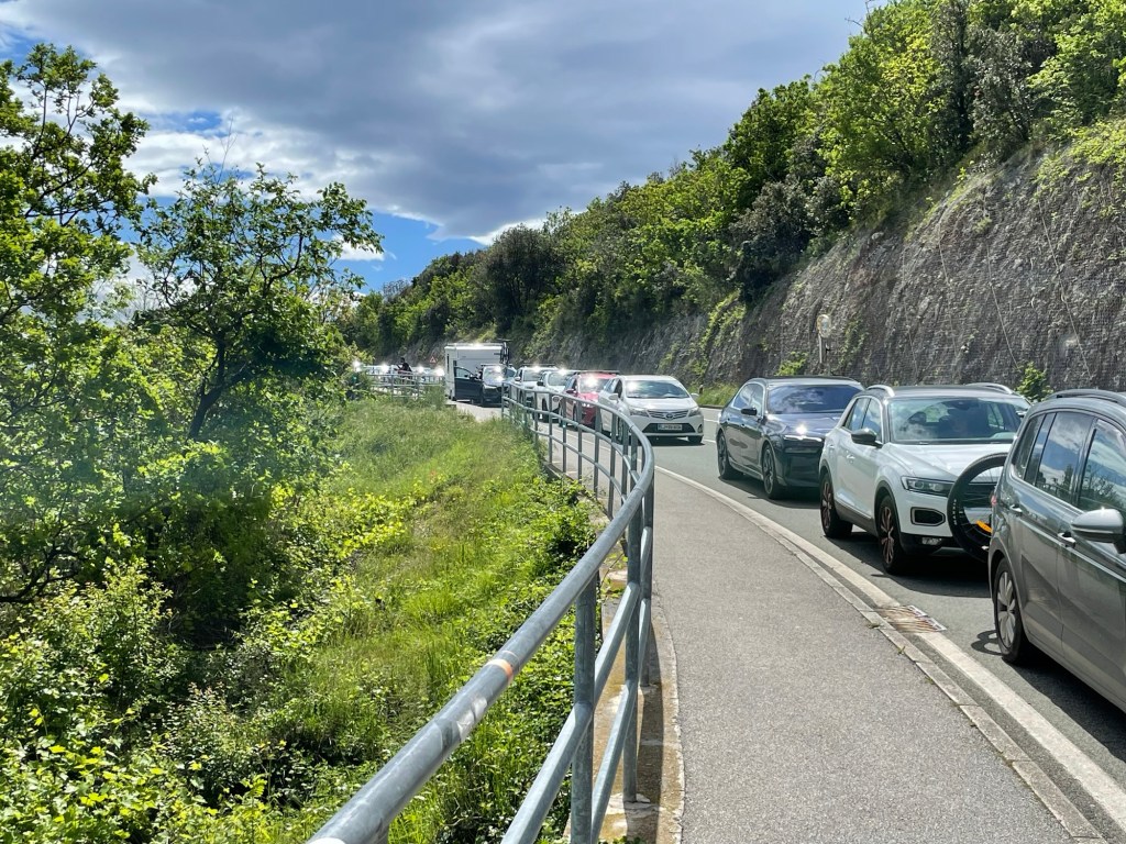 On the road to the ferry at the southern tip of Istria – nice view!The 11:30 ferry preparing to make landingThe line of waiting cars stretches back way up the hill