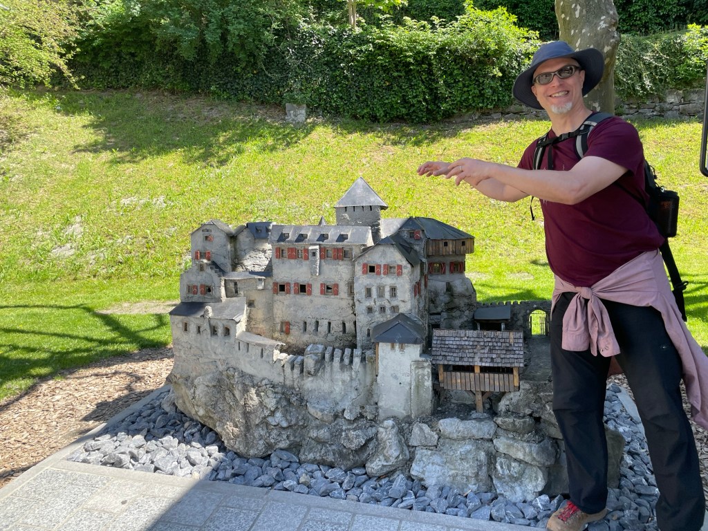 After one more transfer and a bus ride, we finally made it to Vaduz, capital of Liechtenstein. Vaduz Castle sits on a height above the city, home to the royal family and off-limits to visitors. A scale model stands next to the tourist office, and for those curious about the place they offer a VR tour (which we did not take). Also in Vaduz is an excellent Postal Museum, where along with various pieces of postal memorabilia they keep a collection of all the commemorative stamps the country has ever issued. There are quite a lot of them, since issuing high-quality stamps that are snapped up by collectors is a source of revenue for the country. The museum itself is free, but sending a postcard from it costs around $5 for the card and stamp together.