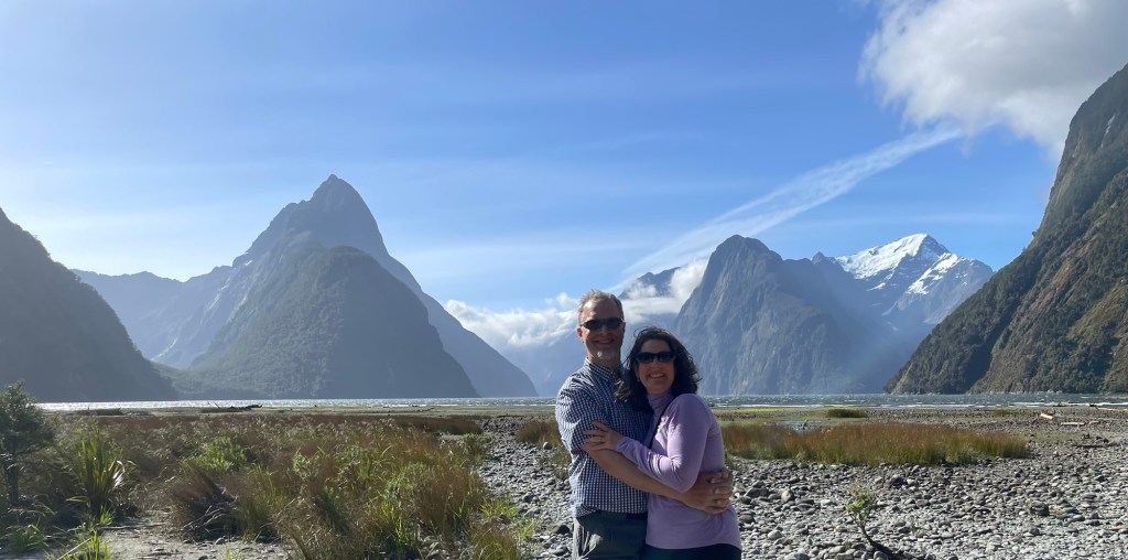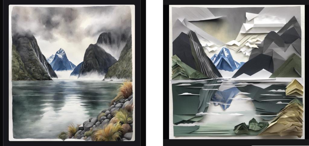 If you’re wondering about Susannah’s day, she attended some excellent sessions. One delved into new text-to-image technology. Assisted by AI, she generated some new images of Milford Sound, shown below. It’s a beautiful landscape, in person and digitally generated!