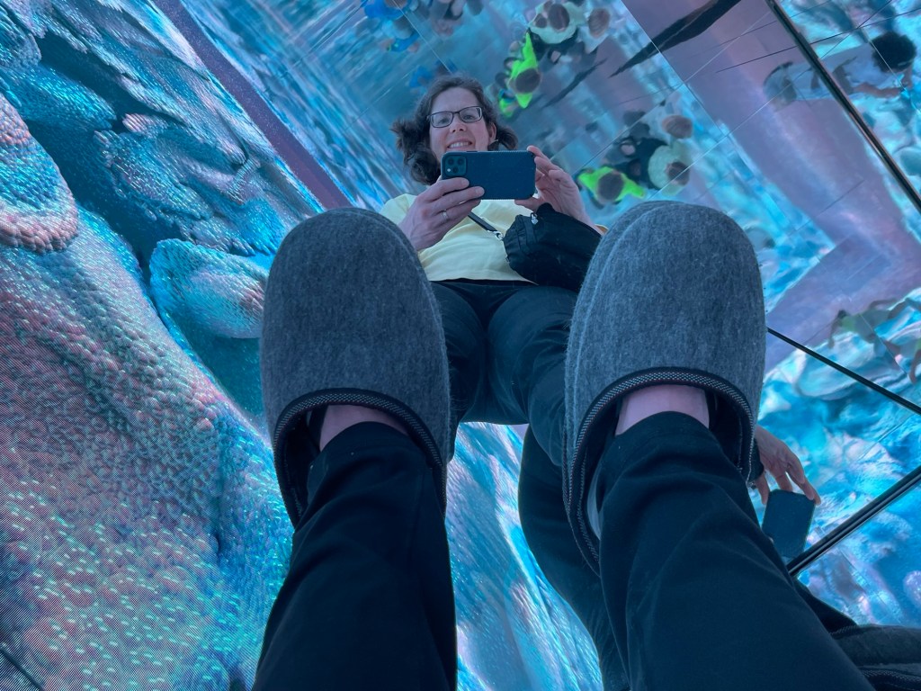 The sea and sand are always part of the conversation here. Yesterday we saw a village that had been abandoned due to sand infiltration. Today, we saw a whole church that was swallowed by sand. All that remains visible today is the upper part of the tower, since the rest of the structure was pulled down when it was abandoned. The tower was left standing and painted white to serve as a navigational aid for sailors.