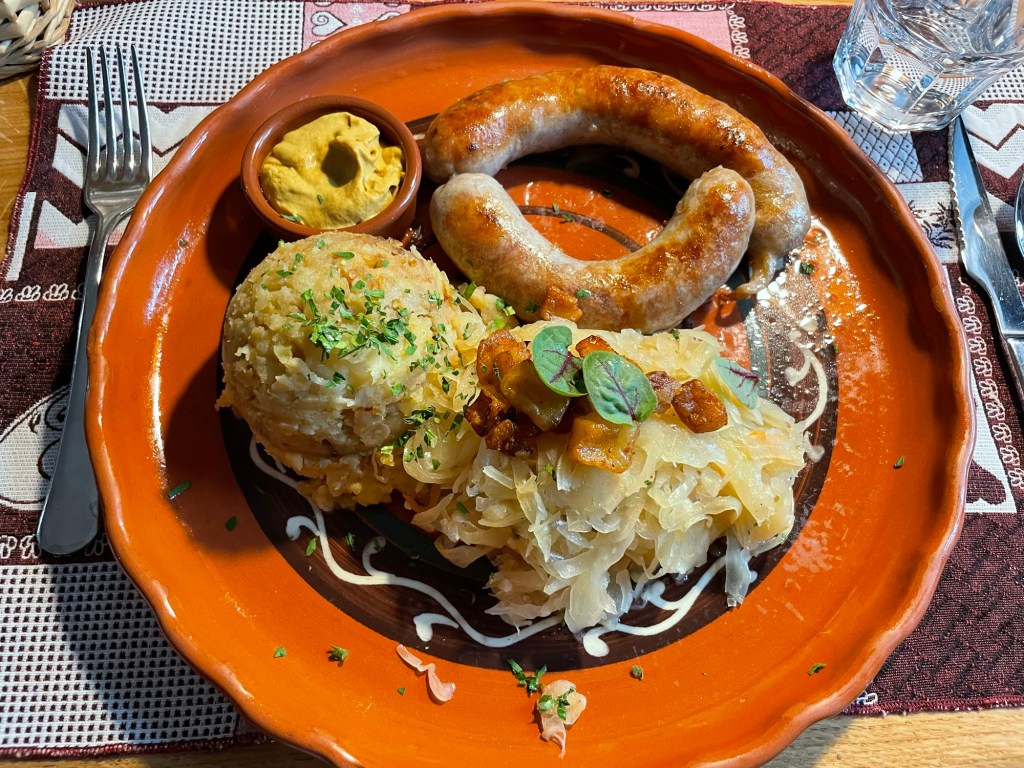 Many meetings of the Skagen painters took place in the dining room of Brøndums Hotel. To mark it as their own, the artists decorated the room with paintings and portraits inlaid within the wood paneling. In later years the original decor was preserved and transferred to the Skagen Museum so that visitors can see the room as it existed then. Meanwhile the Brøndums Hotel still stands, and it is possible to order lunch as we did in its now modernized dining room. One specialty of the house is a Danish treat: smørrebrød.